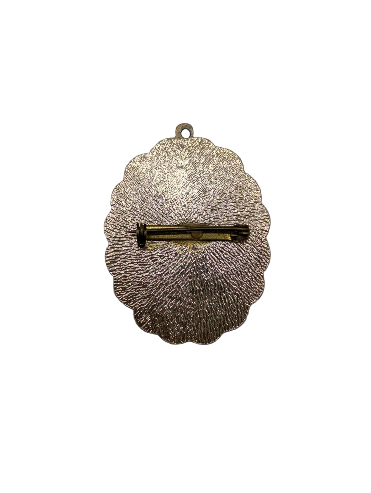 A romantic ode to old-world craftsmanship, this Vintage Cameo “Flora di Sera” Brooch Pin showcases a classic carved cameo portrait framed in an ornate gold-tone bezel with subtle black enamel detailing. The raised floral headpiece and soft profile capture the elegance of traditional vintage cameos, making this a timeless statement piece for collectors and style lovers alike.