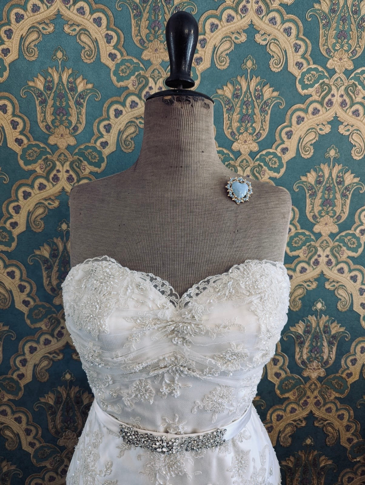 For centuries, the sacred heart has symbolised eternal love, devotion, and the connection between past and present. Whether worn as a token of protection, a tribute to a lost loved one, or a symbol of unwavering love, this brooch is a meaningful addition to any bridal look. The soft blue version serves as the perfect something blue, while the pure white variation can be worn close to the heart as a reminder of those who are no longer physically present but forever loved.