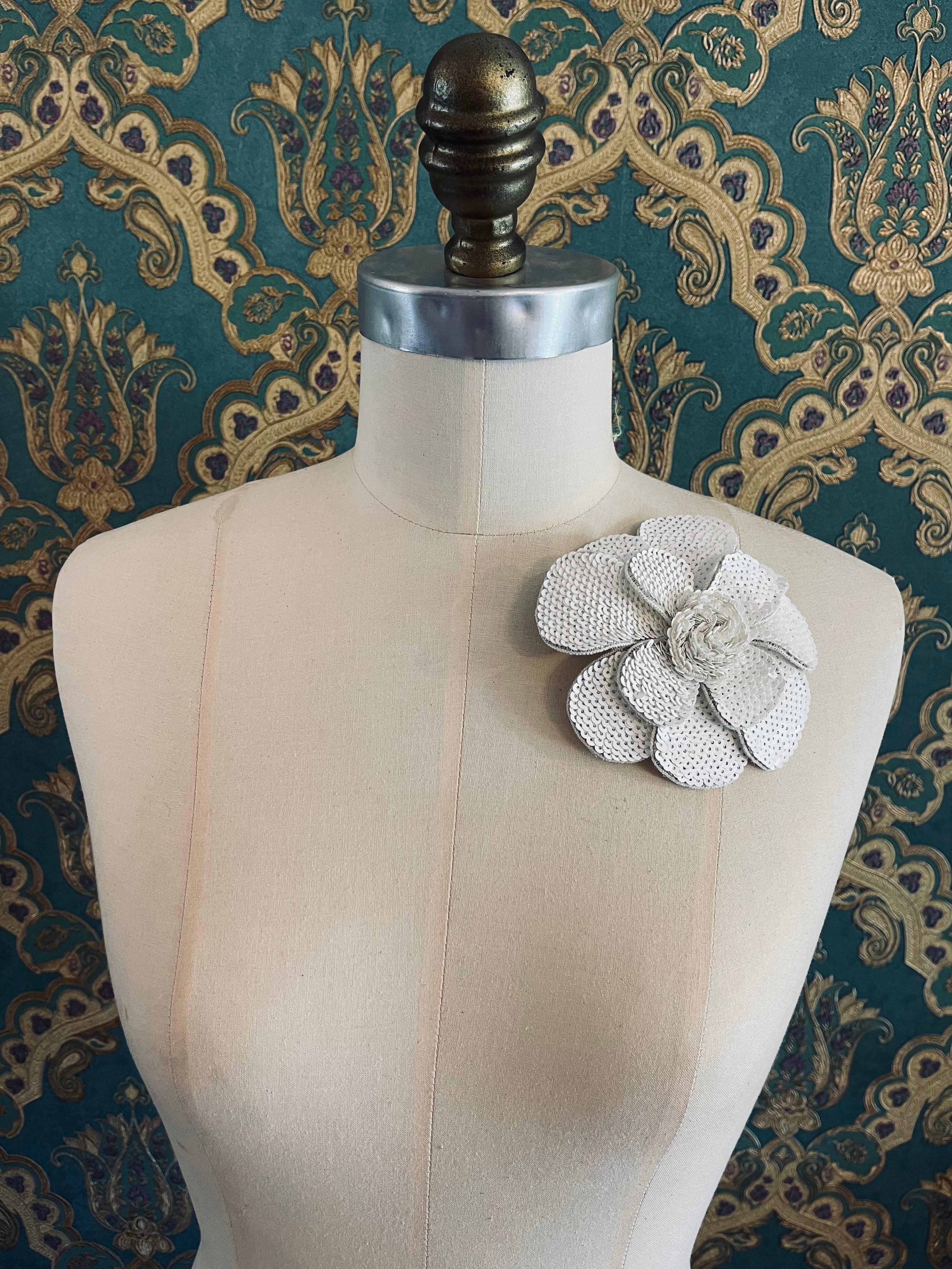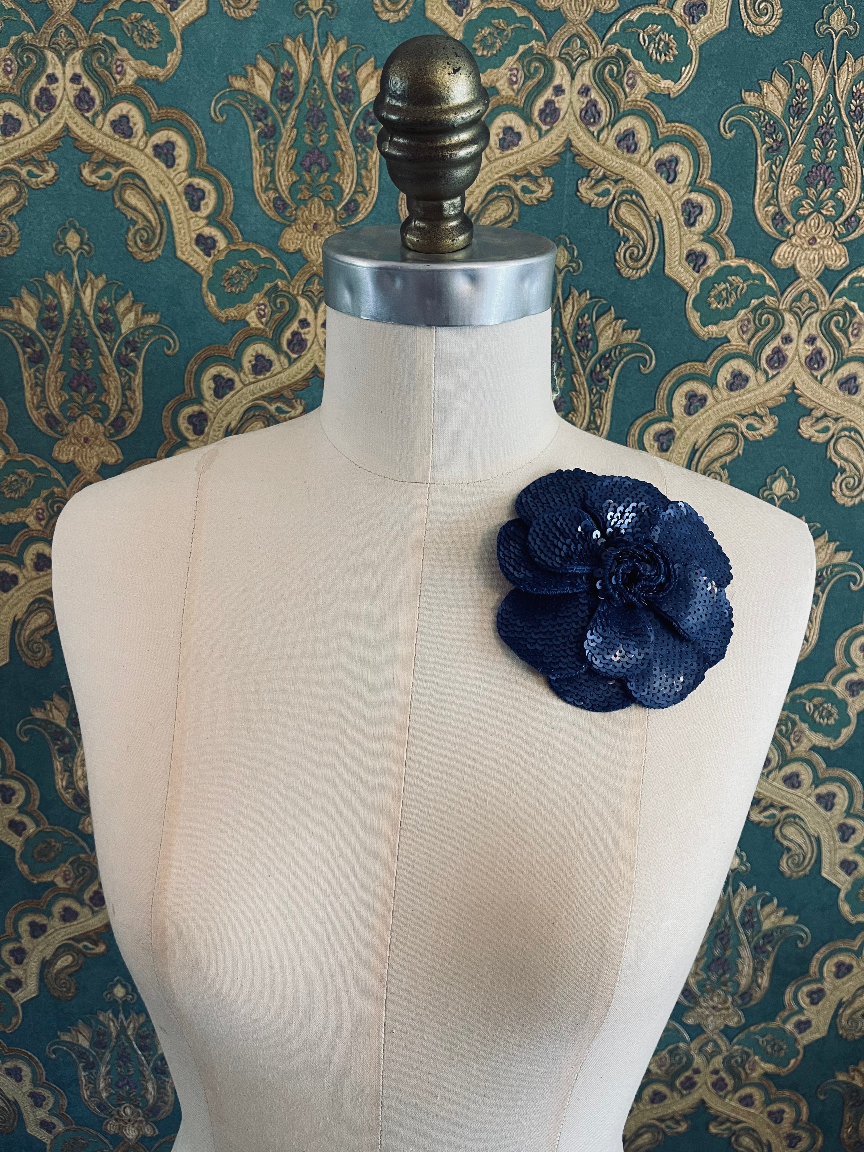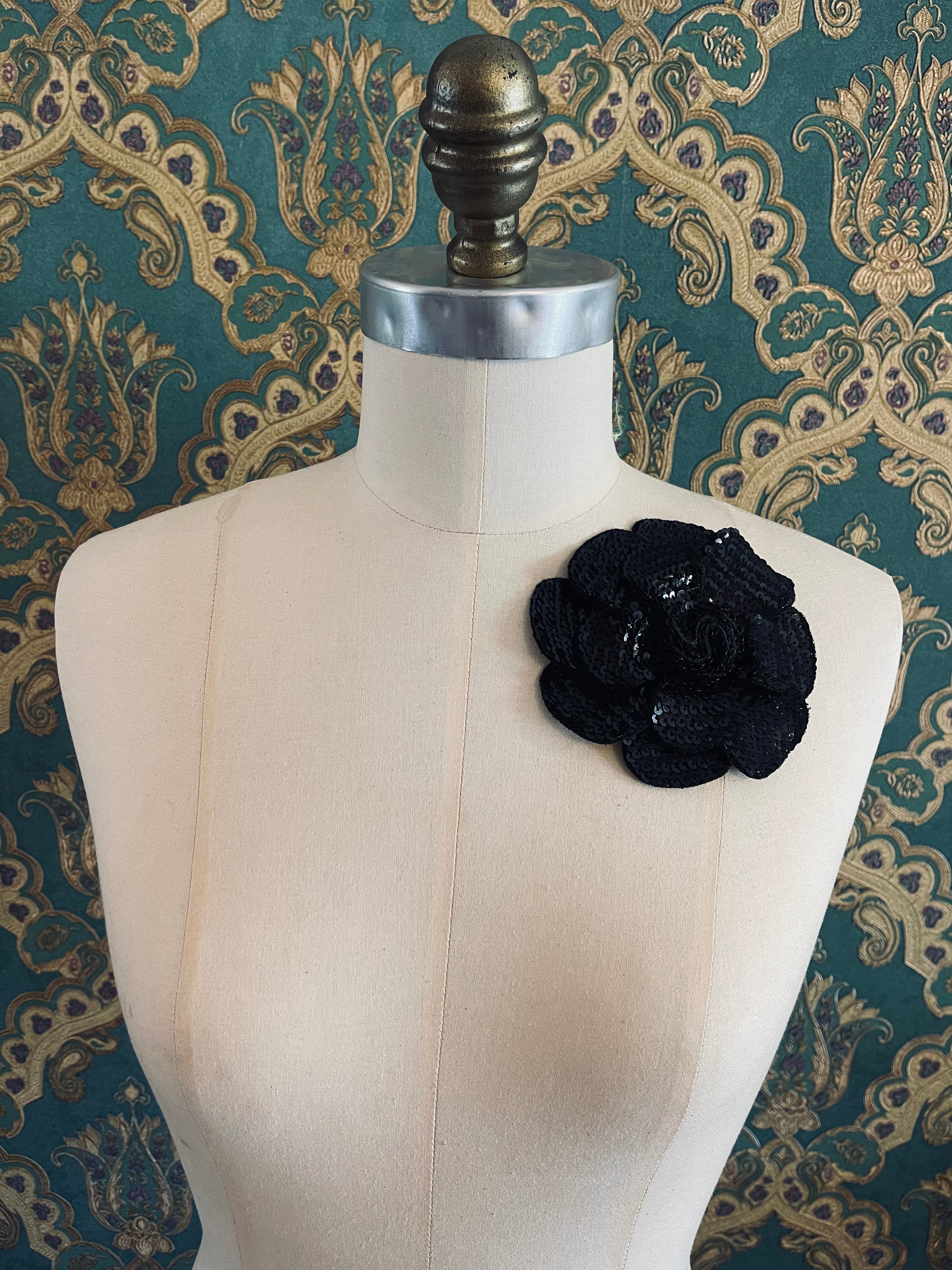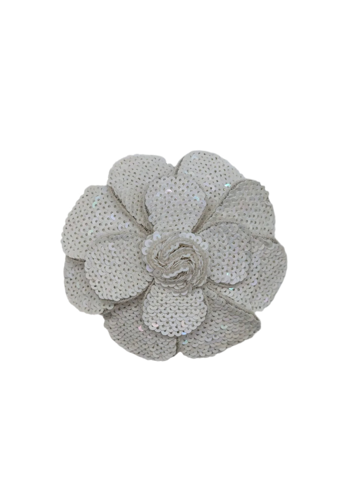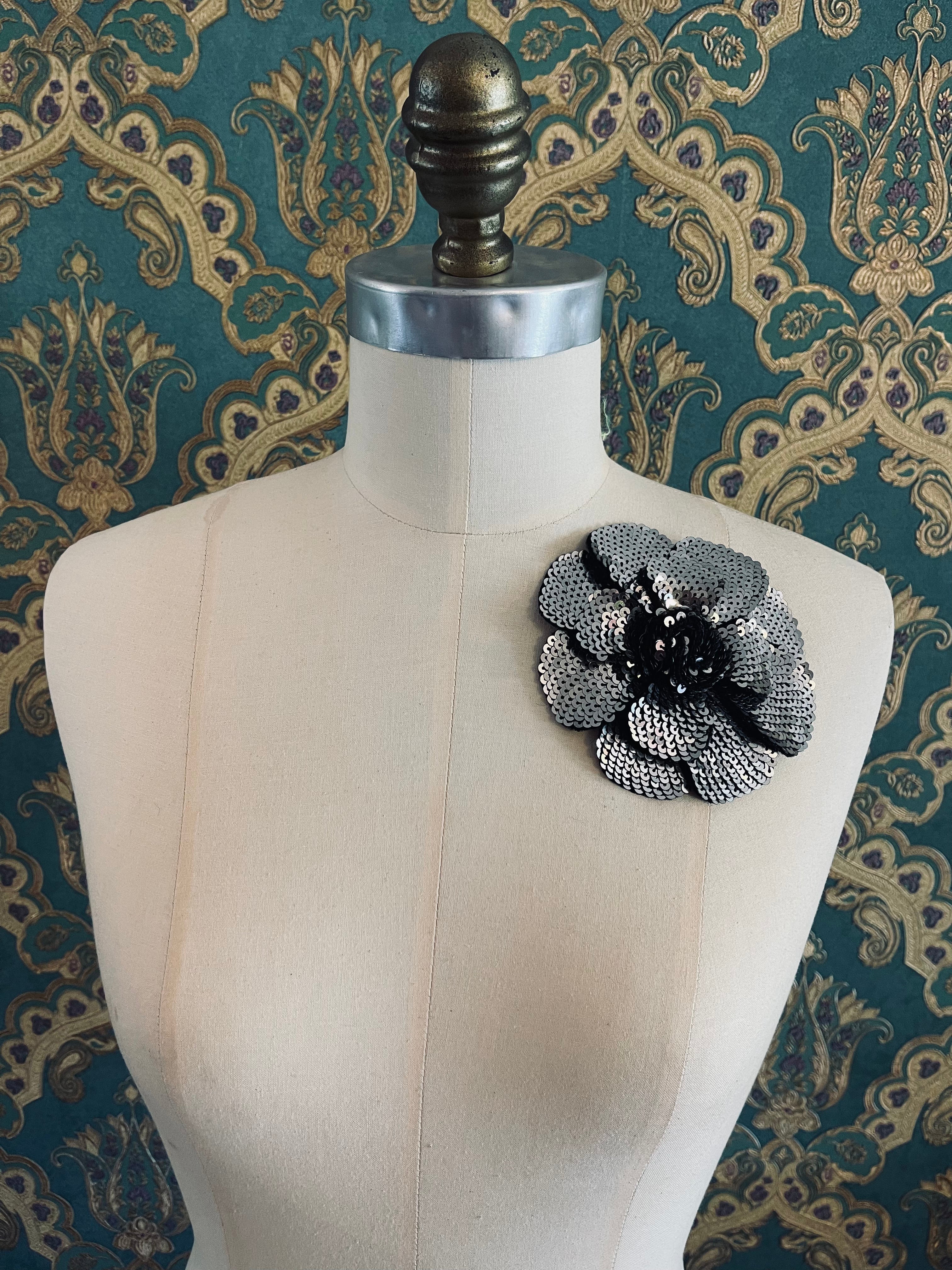 Entirely one of a kind, the Fiore Scintillante - shimmering flower - is made of sequins with each embellishment individually hand sewn. The combination of embroidery renders the piece unique.