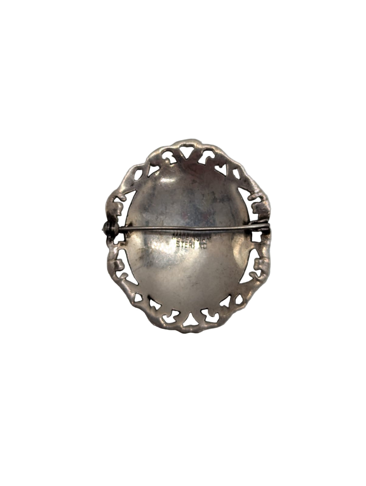 A striking piece of mid-century Siam sterling, this vintage brooch features the classic black niello centre engraved with two traditional Thai Mekkala & Ramasoon dancing figures — symbols of myth, movement, and protection. Set within an ornate open-work sterling silver frame, it’s a timeless collectible that brings cultural artistry to any outfit.