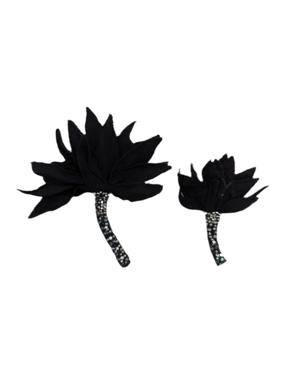 It's all about the details! Bring an elegant but edgy vibe to your daily looks with this beautiful embellished tulip brooch. Made with eye-catching crystal and embroidery details, this piece won't ever let you get unnoticed. Featuring hand sewn petals leading down to a crystal embellished stem. Looks amazing when both sizes are paired.